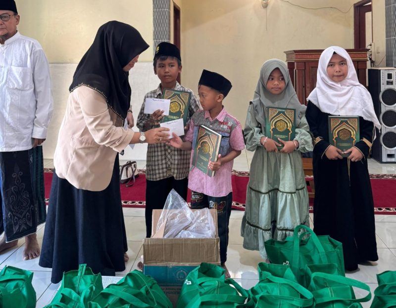 Kegiatan berlangsung sederhana dengan doa bersama dan harapan agar bantuan yang diberikan dapat mendukung kebutuhan sehari-hari serta semangat belajar anak-anak di panti tersebut.