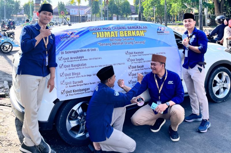 Jatimekspose.com, Bangkalan — Dalam rangka mempererat kepedulian sosial terhadap masyarakat, Gadai Mas Bangkalan menggelar kegiatan bertajuk “JMG”(Jum’at Berkah Gadai Mas) Jumat (7/11/2025). Kegiatan ini menjadi wujud nyata komitmen perusahaan untuk berbagi dan membantu masyarakat sekitar.